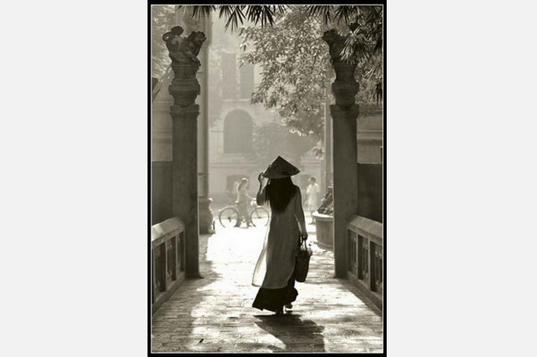 Sa photo en noir et blanc d’une femme en costume traditionnel qui traverse un pont, entre ombre et lumière, nous plonge instantanément dans l’ambiance paisible de l’Asie et a touché le cœur de notre jury.