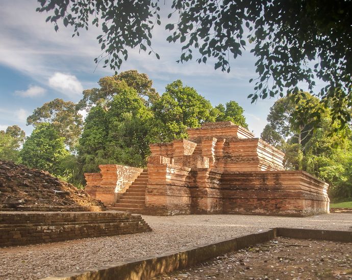 Le site comporte 84 complexes de temples, monastères et centres d’études. Entièrement construits en brique rouge, ils seraient, en fait, autant de facultés reliées entre elles par un réseau de canaux permettant de circuler au cœur de la forêt. Au cœur de Sumatra, sur les rives du Batang Hari, fleuve principal de l’île, Muara Jambi témoigne d’une page majeure de l’histoire du Bouddhisme en Indonésie.