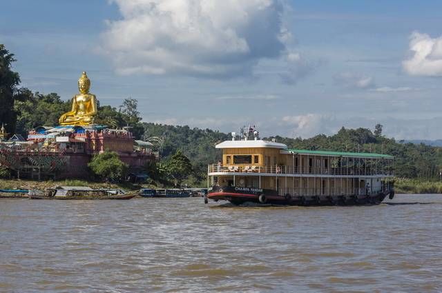 Navigation sur le Haut-Mékong à travers une nature préservée. Selon le temps, visite du village de Huay Xay. Déjeuner, dîner et nuit à bord. (P.déj+Déj+Dîn)