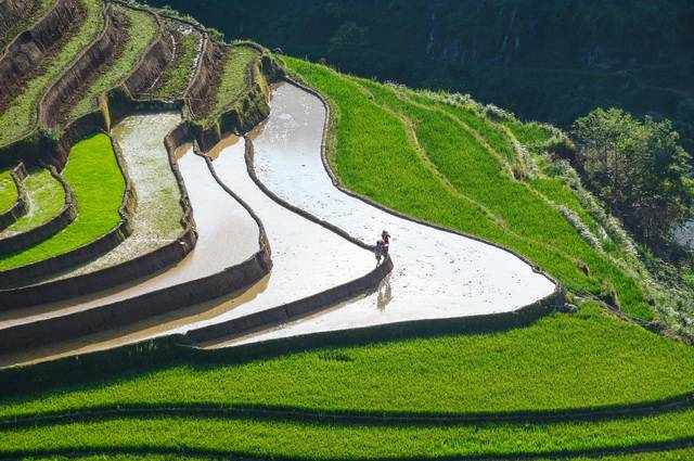 Route pour Y Linh Ho pour rejoindre la superbe vallée de Muong Hoa, et faire une jolie balade à pied entre villages Hmong et rizières en terrasses (environ 3h, sans difficulté). Déjeuner puis retour à Hanoi par la route. (P.déj+Déj+Dîn)