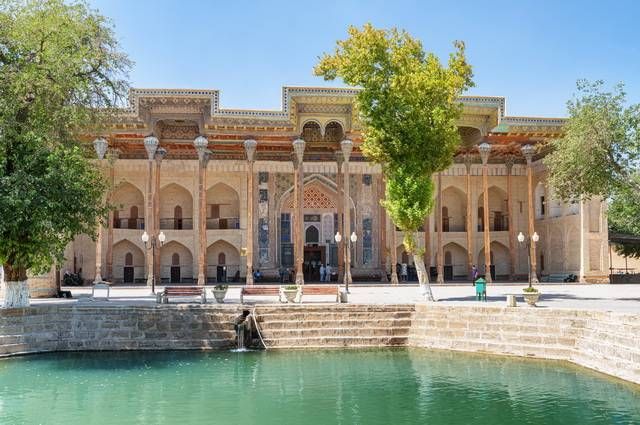 Découverte du patrimoine : la citadelle de l’Ark, résidence fortifiée des khans de Boukhara (sauf mercredi), la mosquée Bolo Khauz et son bassin, le mausolée Samanide, l’ensemble Poï-Kalian protégé par l’UNESCO et son minaret, le joli complexe de Laby Khauz (16e - 17e s.) et son bassin entouré de médersas, les coupoles marchandes et le splendide mausolée Tchachma Ayoub. (déjeuner inclus)
