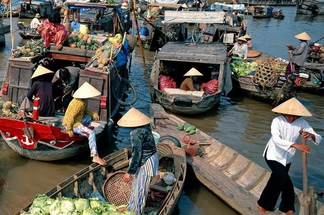 Route (environ 2h) pour la petite ville de Cai Be et embarquement sur votre bateau pour une croisière dans l’entrelacs de rivières du delta du Mékong. Premier arrêt pour visiter une vieille demeure restaurée par les Japonais et découvrir quelques-unes des activités typiques du delta : fabrique de popcorn, de papier de riz ou distillerie artisanale… Poursuite de la navigation vers l’île de Binh Hoa et ses pépinières exotiques. Déjeuner puis arrêt dans une usine de carrelages, avant de débarquer à Vinh Long. Transfert à Can Tho et installation à l'hôtel. Soirée libre pour flâner en ville ou le long de la promenade de Ninh Kieu. (Déj)