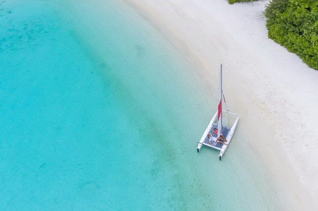 L’hôtel ne possède pas de piscine, mais les clients sont enchantés par son magnifique lagon cristallin où vivent de nombreuses espèces de poissons, ainsi que des raies, et par les plages paradisiaques des autres petites îles qu’il est possible de découvrir en excursion.