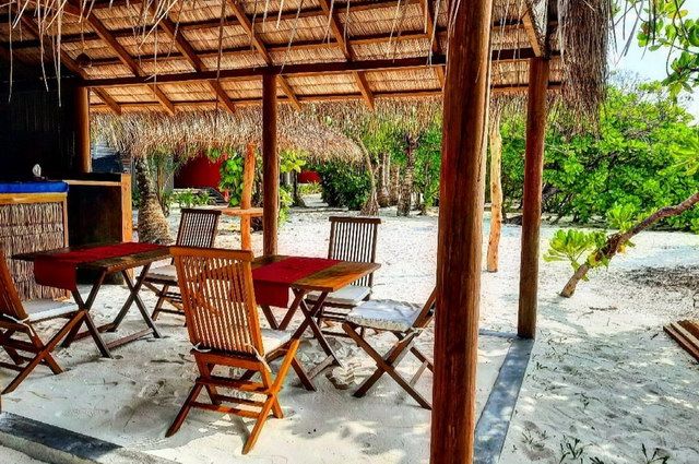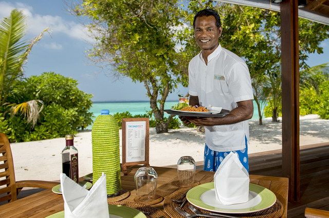Le restaurant Barefoot propose une cuisine variée avec d’excellentes spécialités italiennes, le snack-bar Raanee propose boissons et snacks maldiviens les pieds dans le sable, bar à jus, et bar sur un bateau (pour les boissons alcoolisées) accessible en petite annexe en 5 min. Jardin bio produisant fruits et légumes tous frais. Wifi gratuit, boutique, bibliothèque.