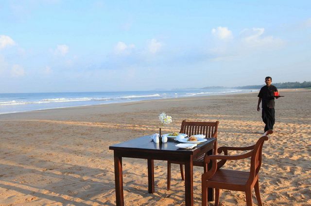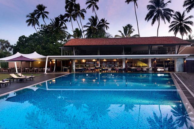 A Bentota, à mi-chemin entre Colombo et Galle, et à 2h30 de l’aéroport, le long d’une jolie plage de sable frangée de cocotiers.