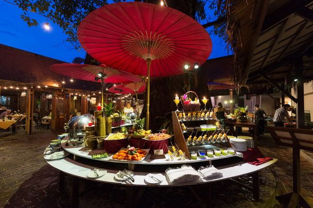 1 restaurant principal, le Bhandari, largement ouvert sur la piscine, propose cuisine européenne et asiatique tandis que le Siam, uniquement ouvert en soirée, offre un bel aperçu de gastronomie thaïlandaise. 2 bars, dont l’un situé à proximité de la piscine.