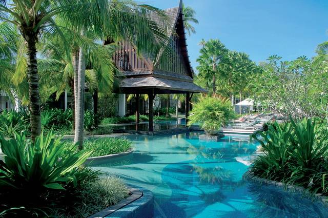 Immense piscine-lagon (1 600 m²) au cœur d’un beau jardin paysagé, véritable éden tropical, propice au farniente. 2ème piscine adjacente qui serpente entre palmiers et sur laquelle certaines chambres ont un accès direct (chambres Deluxe Pool Access). Bains à remous, centre de fitness, plage de Surin à 2 min à pied mais surtout 2 Beach Clubs exclusifs sur Kamala et Bang Tao Beach (navette gratuite pour y accéder). Là, matelas et parasols sont proposés gratuitement aux résidents de l’hôtel. Ambiance et détente garantie.