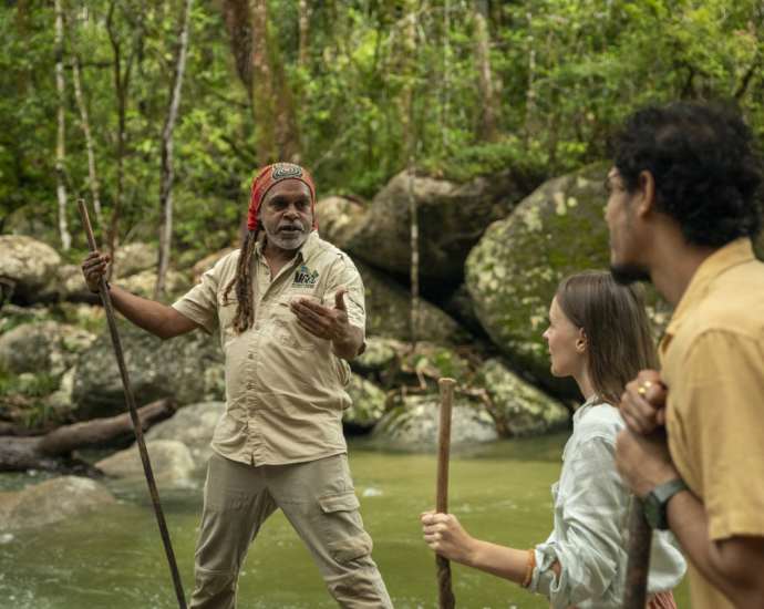 Cet écrin confidentiel sera votre point de départ pour explorer la mythique Grande Barrière de Corail – mais loin des foules. À bord d’un catamaran, cap sur les récifs les plus préservés comme Upolu Cay ou Outer Edge Upolu Reef, pour une journée ponctuée de snorkeling, de baignades cristallines et d’observation marine avec un biologiste expert. Le voyage prend ensuite une dimension plus végétale à Cape Tribulation, là où la forêt de Daintree, plus ancienne forêt tropicale au monde, rencontre les plages désertes. Loin d’un simple panorama, c’est une véritable plongée dans un écosystème ancestral. Guidés par un membre de la communauté aborigène locale, vous apprendrez à lire les signes de la nature, découvrir les secrets des plantes médicinales, et comprendre le lien sacré entre cette terre et ceux qui y vivent depuis des millénaires.